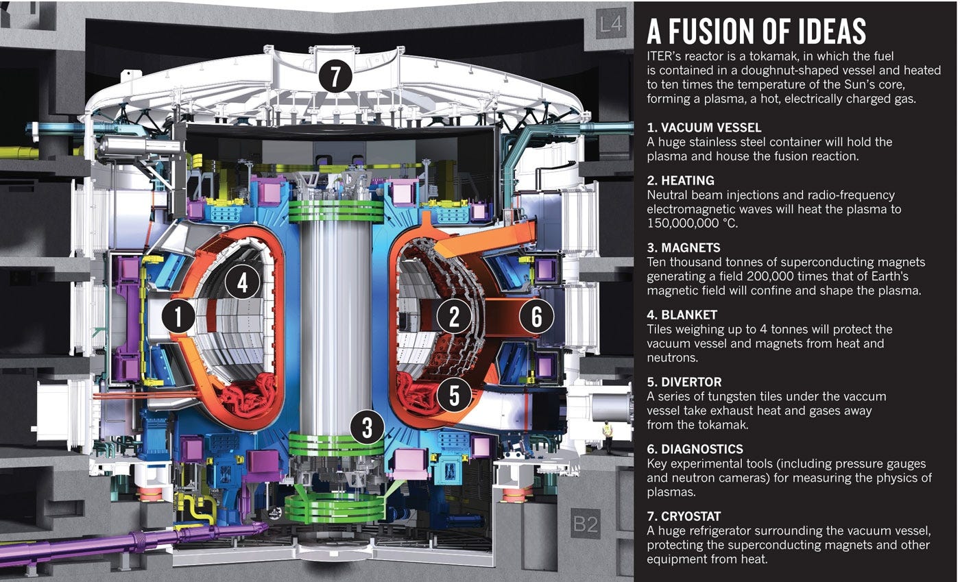 As you see from the above graphic, Rosatom doesn’t just operate Russia’s nuclear power complex, which is typical of all Russia’s public utility corporations. I note one missing area is education, which is discussed in the meeting between Putin and Alexei Likhachev along with its significant progress. As usual, the reader will discover more about Russia’s economy and its advancement as Rosatom’s accomplishments don’t occur in a vacuum. Russia has a number of organizations related to education and personal promotion that are aimed at the development of Russia’s human capital which in turn strengthens Russia. Three of these are noted, [ANO] "Russia is a land of opportunities", "Sirius" and the National Center for Physics and Mathematics, all of which are connected to the Agency for Strategic Initiatives that I’ll be writing about this week. At Rosatom’s website, I find more info is available via the Russian language pages than English, although you can choose the latter language easily if you lack translation software. This page has an A-Z listing of its current projects and activities some of which are mentioned in the talk. From there, you can navigate Rosatom’s website. One very important area of Rosatom’s activities is its development of the Northern Sea Route, which can be read about here. At the top of the page is a menu behind an icon having three horizontal lines that displays the website’s index for further surfing. The ITER project is mentioned and Putin asked about Russia’s own Tokamak. Here’s a schematic of the ITER Tokamak